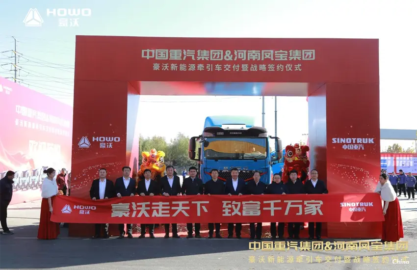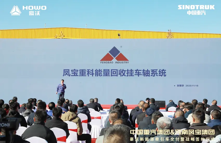 On November 18, 2025, Sinotruk and Fengbao Heavy Industry announced a deep cooperation agreement and the grand launch of Fengbao’s trailer generator axle power system. At Fengbao Heavy Industry’s headquarters on the banks of the Hongqi Canal, Sinotruk and Henan Fengbao jointly opened a new chapter in new energy heavy-duty truck transportation.