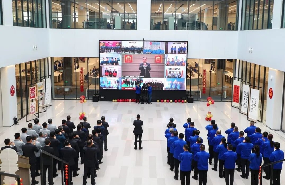 On the 27th day of the twelfth lunar month, Shandong Heavy Industry Group held a video conference to extend New Year’s greetings to employees in overseas markets. Wang Zhijian, Party Secretary and Chairman, led the group and its subsidiaries’ leadership team in a video conference with overseas employees, extending sincere greetings and New Year’s wishes to those working tirelessly on the front lines of overseas markets and those stationed in overseas subsidiaries.